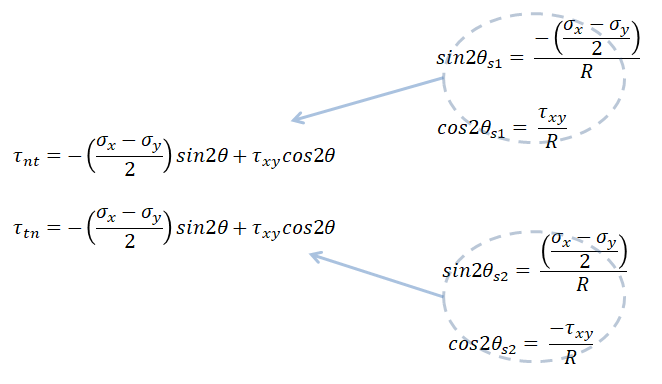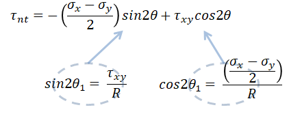 이를 원식에 넣고 tau_nt, tau_tn에 대해 풀이하면 다음과 같이 최대전단응력을 구할 수 있다.